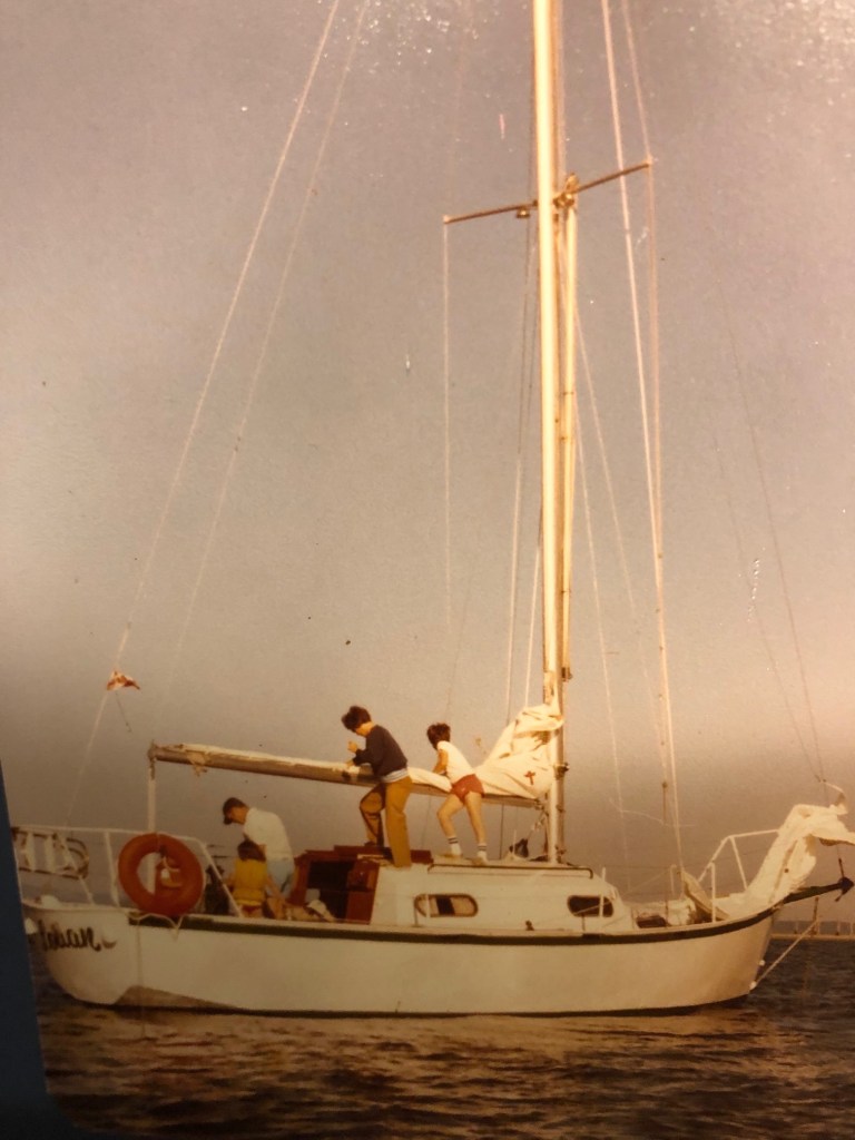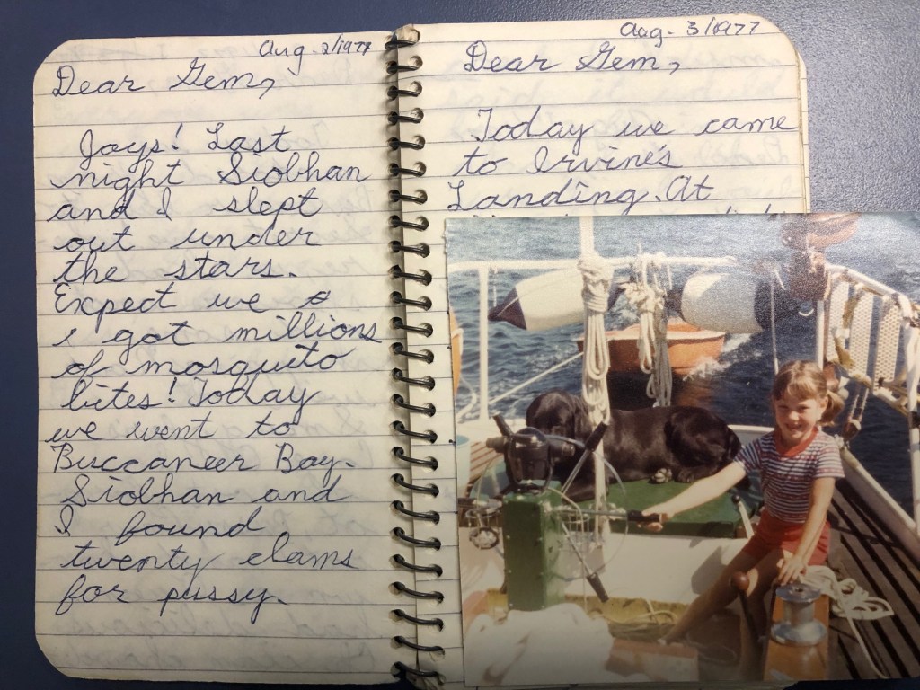 There is no reason for being crazy. She had a perfectly lovely middle-class childhood through the 1970s-80s in western Canada. As the middle child, Marie’s birth was evenly spaced out 4 years between the oldest and the youngest with a stay-at-home mom who dabbled in part-time work when her little sister started school and a military father who sailed as a hobby. Before the horses were the sailboats on which the family “swallowed and amazoned”[1] while cruising on weekends and summer holidays through the gulf islands. Marie kept journals of those trips that chronicled adventures on little islands, sometimes no more than a big rock with a scrubby tree, to which she and her sister rowed ashore in the dingy, sometimes joined by the cat or dog who needed some solid land to relieve themselves.