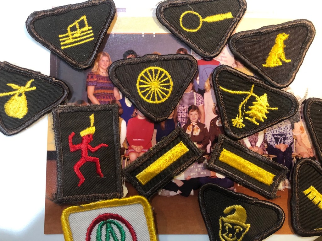 Marie collected badges with the goal to get as many as she could to sew on her dress, layering the brown fabric with brown badges: — “Dear Diary, Today Brown owl is going to give me a certificate to try to get my book lover’s badge. It’s harder to get than you think it is”[1] She dog-eared the Brownie Handbook checking off badge requirements for more badges: pet lover, housekeeper, collector, hostess…